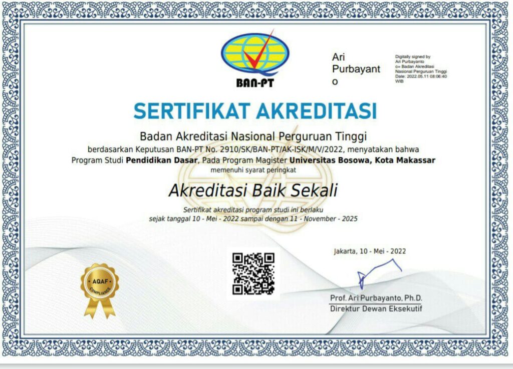 Surat Keputusan Akreditasi Magister Pendidikan Dasar Universitas Bosowa.